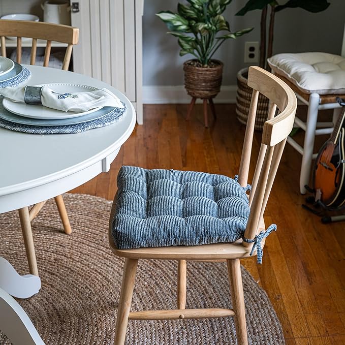 Barnett Home Decor Chenille Rib Slate Grey Dining Chair Cushion with Ties - 15 x 17 Size Small Chair Pad - Latex Foam Fill, Reversible - Made in USA (Gray/Small)