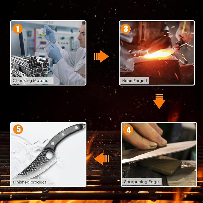 - High-quality Materials: professional butcher knives are made of high-carbon rust-proof German stainless steel. (High-quality special stainless steel 5cr15mov) Rockwell hardness is 56-58, with high quality, sharpness and durability.