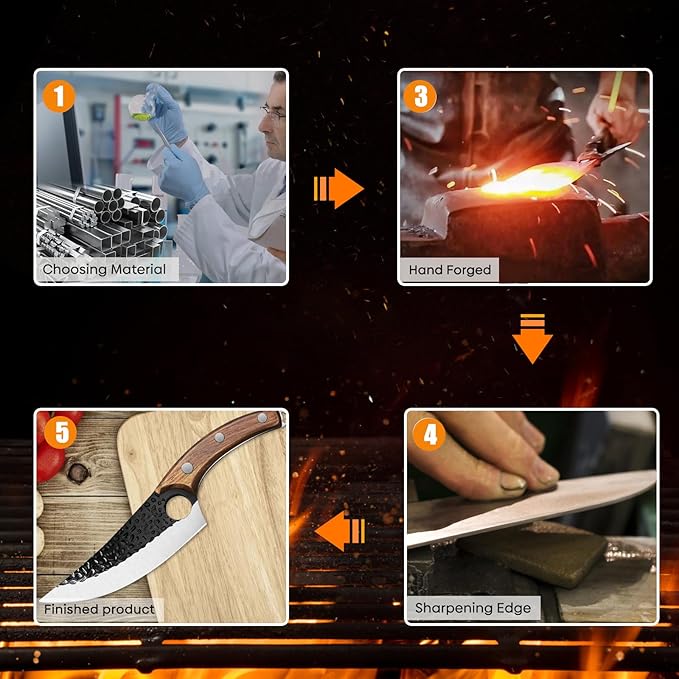 - High-quality Materials: professional butcher knives are made of high-carbon rust-proof German stainless steel. (High-quality special stainless steel 5cr15mov) Rockwell hardness is 56-58, with high quality, sharpness, and durability.