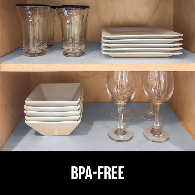 - STRONG GRIP: the Gorilla Grip DuraGuard shelf liner is a durable non adhesive liner designed to stay firmly in place on shelves, drawers and cabinets; will also help keep your items in place; they help to prevent dishware and other fragile items from shifting; designed to help reduce slipping and bunching in your drawers and cabinets