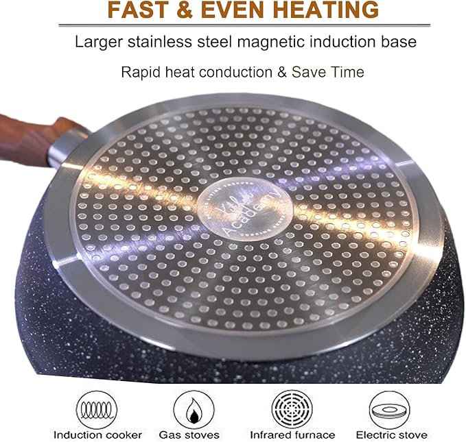 - 𝑮𝒓𝒆𝒂𝒕 𝑸𝒖𝒂𝒍𝒊𝒕𝒚 & 𝑺𝒆𝒓𝒗𝒊𝒄𝒆 : Quality first, Service Utmost. Each Kitchen Academy cookware passes a strict multi-inspection process. If you meet any problems, don't hesitate to contact our 24/7 online customer service which will reply to you ASAP to help with your worries