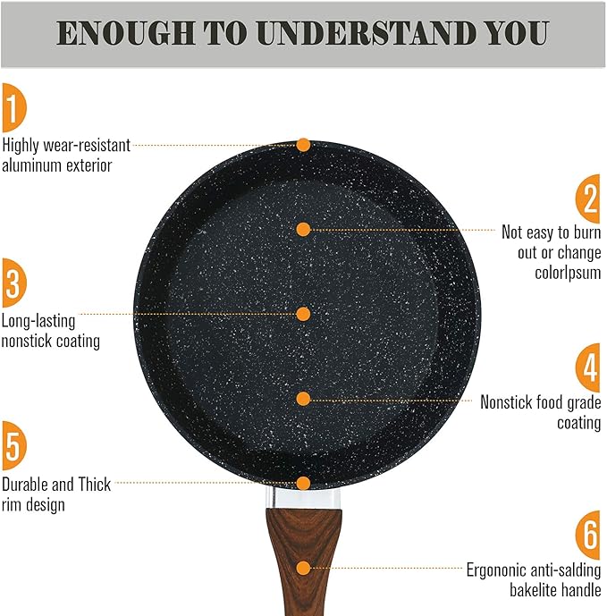 - 𝑰𝒏𝒅𝒖𝒄𝒕𝒊𝒐𝒏 𝑷𝒐𝒕𝒔 𝒂𝒏𝒅 𝑷𝒂𝒏𝒔 𝑺𝒆𝒕 𝑵𝒐𝒏 𝑺𝒕𝒊𝒄𝒌: When buying cookware, one of the important things is nonstick capabilities. The graniteware coating do a good job in preventing food from sticking. Also, you'll be able to cook healthier meals for your family since you won't have to use as much oil. You can safely cook tomato sauce in granite cookware cookware, the taste and smell of your food will not change even if you use acidic or strong-smelling ingredients