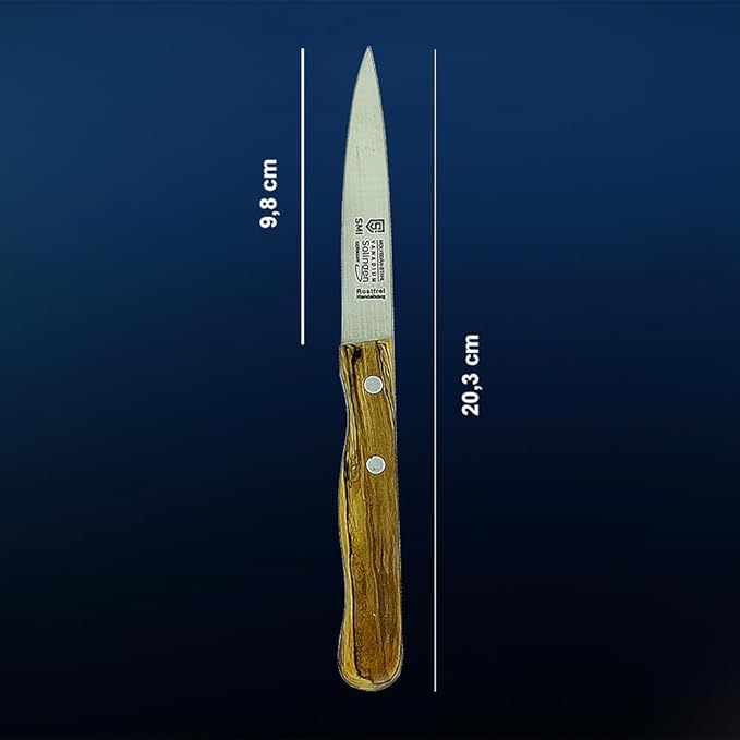 - ✅ ERGONOMIC DESIGN: Having blade length of 9.8 cm and total length of 20.3 cm our professional knife Solingen made with olive wood handle provides non-slip, precise and comfortable control for smooth and long hours use.