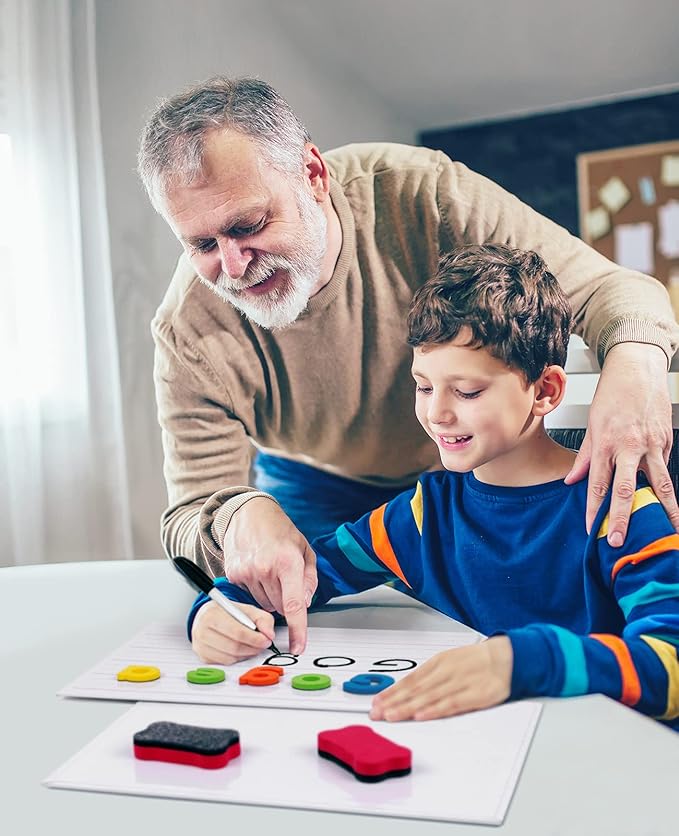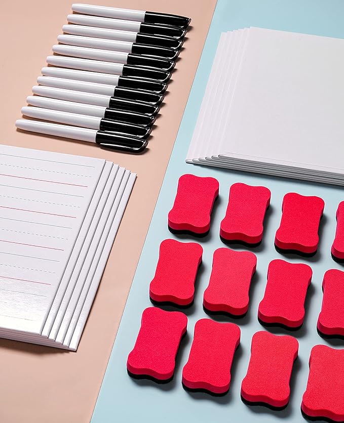 - Double-Sided Magnetic Write and Wipe Board Set: This set includes 12 double-sided dry erase boards, 12 markers, and 12 erasers. The magnetic surface on both sides is ideal for use with magnetic letters, numbers, or any other magnets, making it a versatile teaching tool for classrooms, distance learning, and math activities