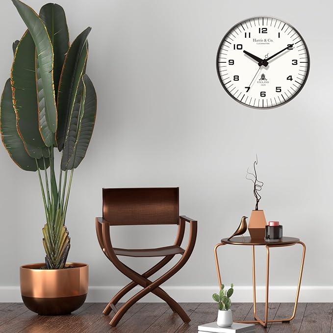 HARRIS & CO. CLOCKMASTERS ( 14 inch Premium Luxury Metal Wall Clock with Glass and Silent Sweep Noiseless Technology, Gun Gray Metal Frame Model Name - Park Lane