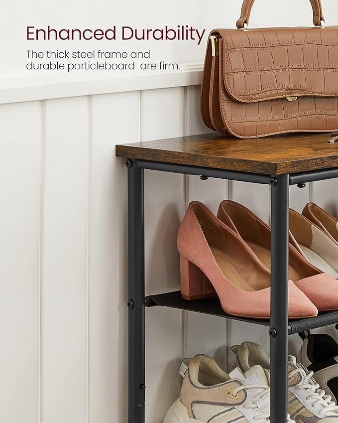 - [Sturdy and Stable] A sturdy steel frame, alongside adjustable feet, keeps the shoe rack balanced on uneven floors. The Max load ability of the top is 66 lb with each shelf bearing up to 22 lb. The included anti-tip kit secures it to the wall for added safety