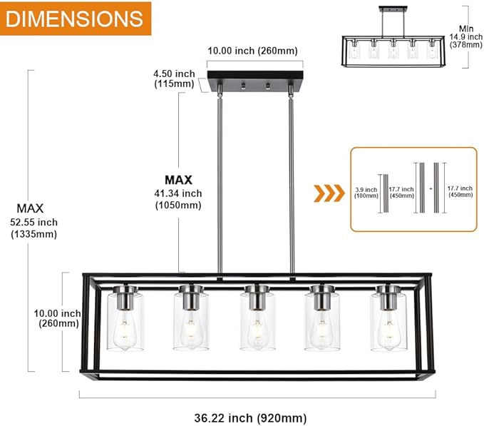 - Contemporary Design: This simple linear island pendant lighting with clear glass shade, unique designed to illuminate the heart of your kitchen, dining room or farm styled places