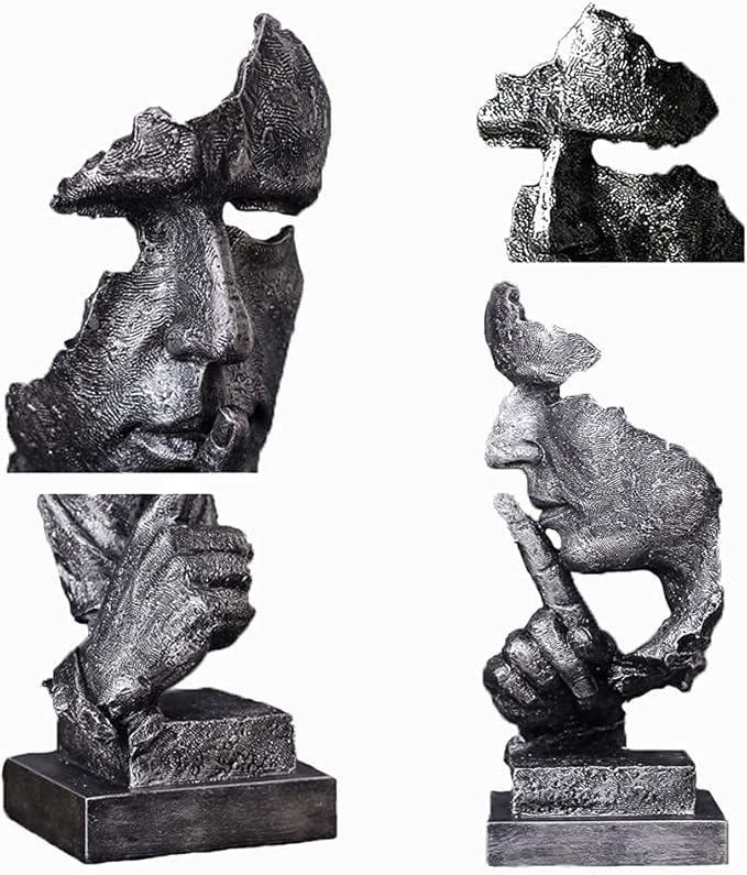 Silence is a Golden Statue Modern Mens Creative Office Home Room Decorations Sculpture Friends Bookshelf Decorative 4.7 x 4.3 x 13.18in(Silver) Modern Home Décor