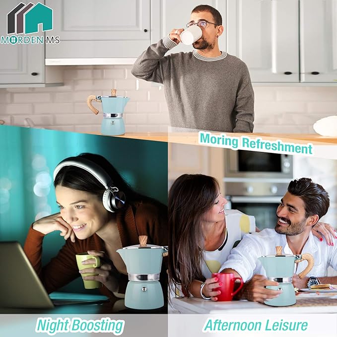 MORDEN MS Moka Pot - Stovetop Espresso Maker 3 Cup/5 OZ Italian Coffee Maker Camping Coffee Pot Manual Cuban Coffee Percolator for Cappuccino or Latte- Blue