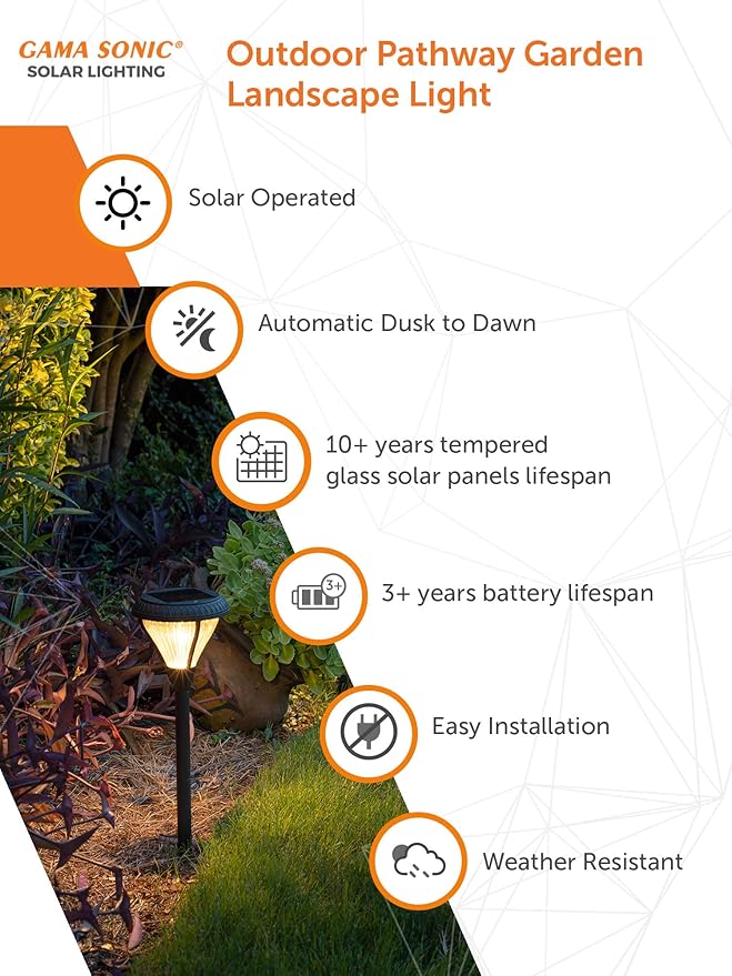 - NO ELECTRICAL WIRING β Upgrade walkways with GAMA SONIC's premium metal solar path lights. Installation is simple, takes minutes and does not require electrical wiring. Place in a spot with direct sunshine.
