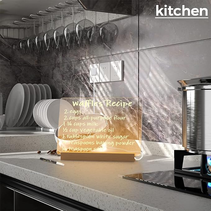 - Sleek Modern Design: Premium 13"x9" acrylic board with illuminated wood stand creates instant sophistication - perfect for creative home notes, office reminder ,or welcome signs to your friends