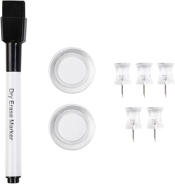 - Complete Accessories: Your dry erase board is equipped with a pen tray containing 1 whiteboard marker, 2 magnets, 5 large pins and 1 pen tray.It's ready to use right out of the box
