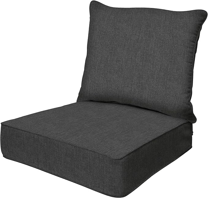 - Universal Fit – Separate seat and back cushions with universal style made to fit most outdoor deep seating and patio conversation chairs. Reversible design allows for use on either side. Seat: 24" W x 23" D; Back: 24" W x 21" H.