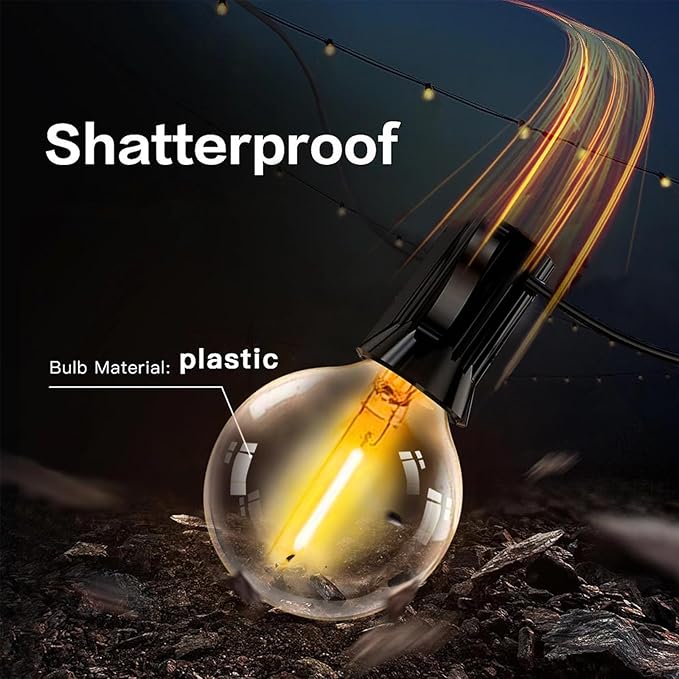 - UL Certification Energy Efficency: Dimmable patio string lights are UL-listed and feature IP44 waterproof technology. Energy efficient LED bulbs 2,700K warm white, reducing electricity bills by 90%, can be end-to-end connectable to a max of 15 sets