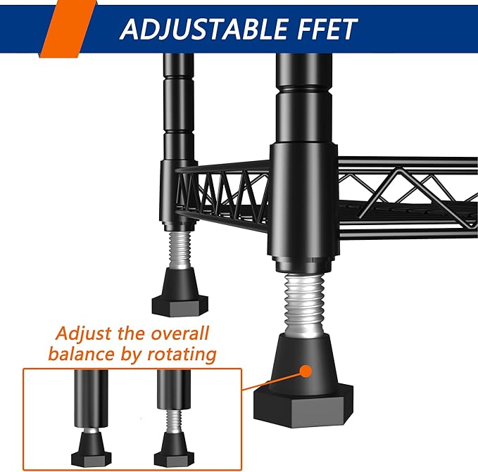 - NO TOOLS ASSEMBLY: Super easily to install and enjoy fun of DIY, the height of each shelf is adjustable depending on your needs. Adjustable feet can perfectly fits uneven ground