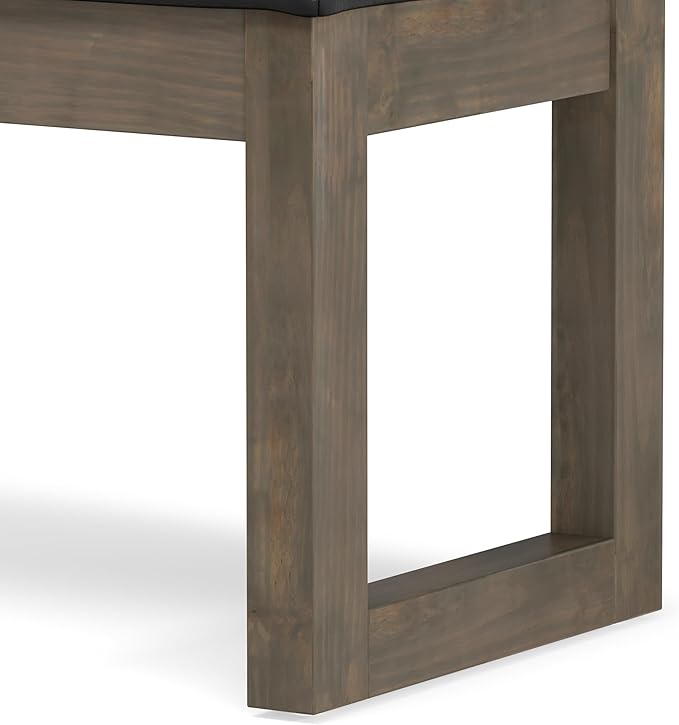 SIMPLIHOME Milltown 27 inch Wide Contemporary Rectangle Footstool Ottoman Bench in Distressed Black Vegan Faux Leather, Assembled, For the Living Room and Bedroom