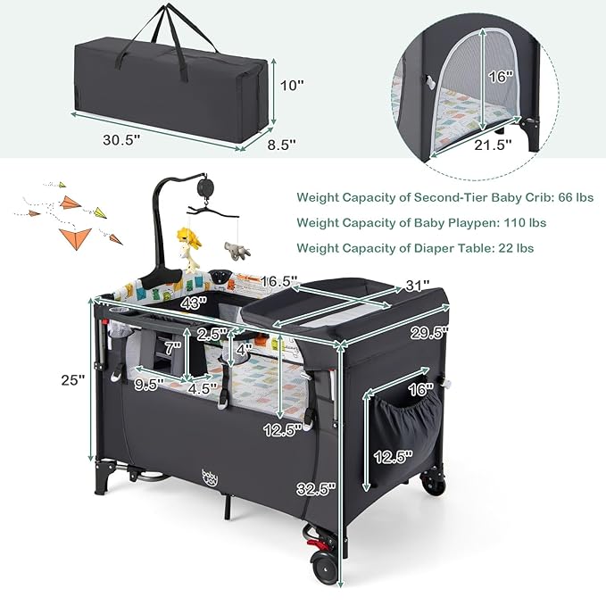 - 2-in-1 Baby Playard and Bedside Sleeper: The armrest on the side can be quickly selected from the 4 heights of 24",26",28",30" through the user-friendly button to keep the height of the adult bed consistent. Therefore, it can be used not only as a playard, but also as a bassinet bed. The zipper-style entrance and exit design on the side makes it easier for babies to enter and exit. NOTE: The height of the mattress cannot be adjusted. The height of the mattress cannot be adjusted.