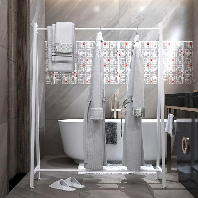 - 【AMAZING LOAD-BEARING CAPACITY】Made of metal, this white clothing rack has good weight capacity, can easily hang your seasonal outfits without shaking.Adopting mechanics of triangle, the metal clothes rack bottom is elaborately designed to A-shape to largely enhance its stability.