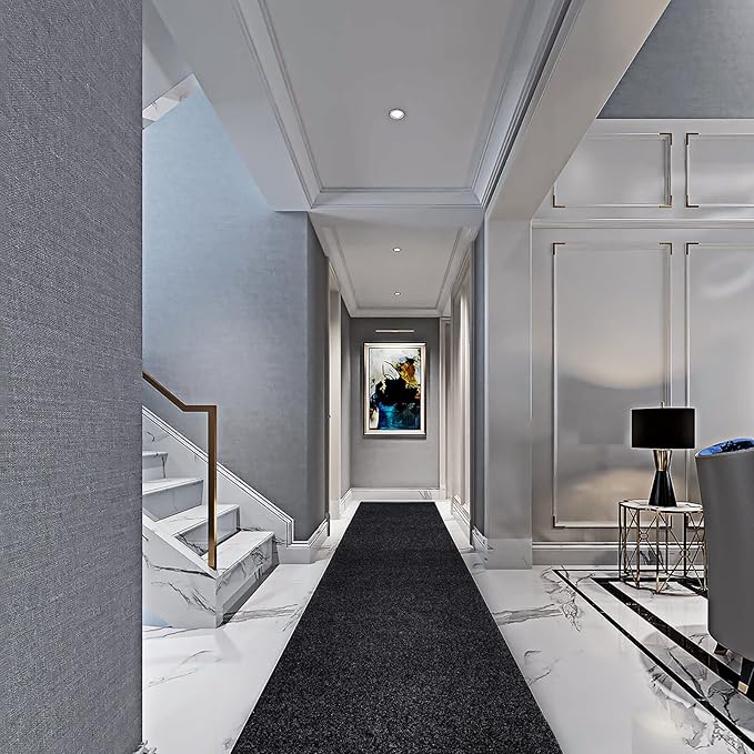 3' x 45' Runner Rugs with Rubber Backing, Indoor Outdoor Utility Carpet Runner Rugs, Black, Can Be Used as Aisle for The RV and Boat, Laundry Room and Balcony