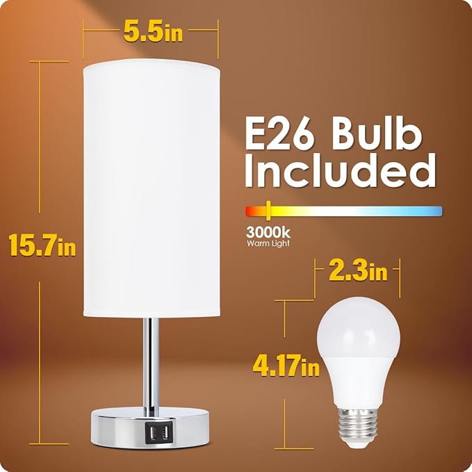 - ✔️【3 WAY SMOOTH DIMMABLE TOUCH CONTROL】- The dimmable bedside table lamp offers 3 level brightness options (Low, Medium, High). Just simply tap on anywhere of the metal base to adjust the lighting to meet your different needs. Nightlight for a steady sleep or nursing. Accent lighting for a warm mood. Proper high comfortable brightness for studying or working. Super handy to operate.