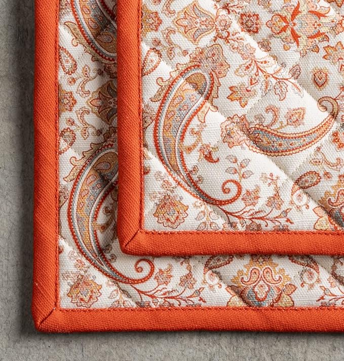 - Premium Quality: Crafted from quilted 100% cotton, this heat-resistant pot holder set protects your hands from hot cookware. Each piece features a built-in hanging loop for easy storage and quick access. Perfect for everyday home kitchens, farmhouse kitchens, hotels, restaurants, and bakeries