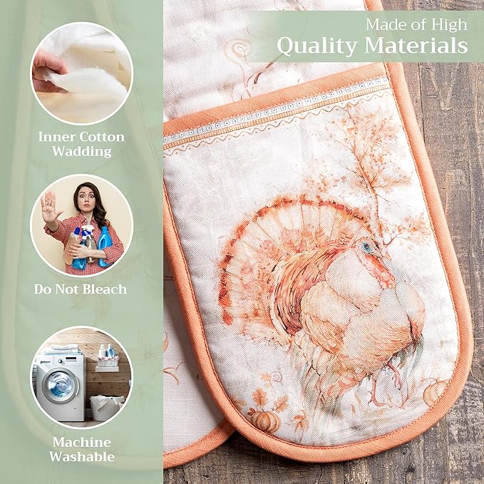 - Unique Design: Inspired by Europe, featuring exquisite watercolor artwork where each design embodies over 120 hours of hand-painted artistry. The rich hues and fine detailing make this Double Oven Mitt perfect for holiday tables, fall decor, Thanksgiving decorations, or festive Christmas decorations