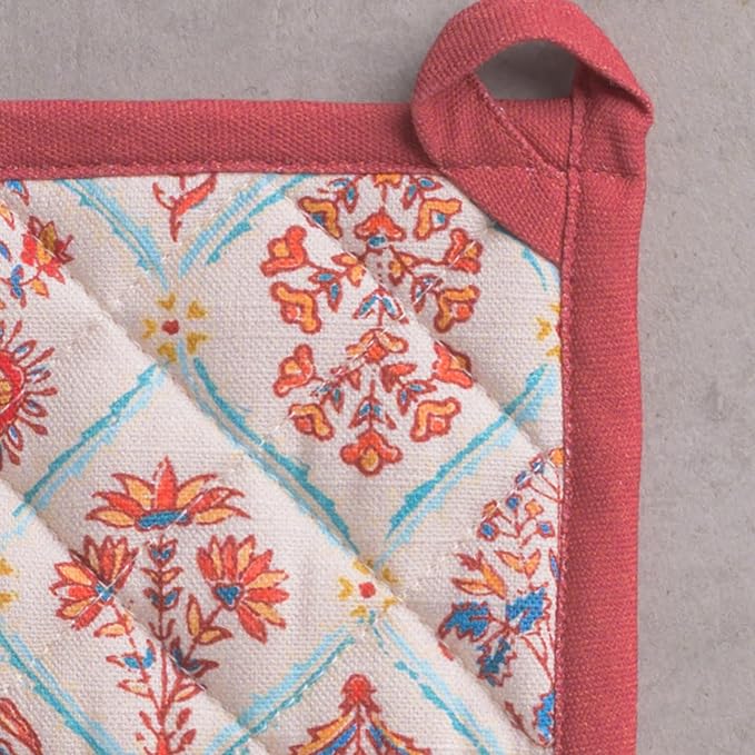 - Premium Quality: Crafted from quilted 100% cotton, this heat-resistant pot holder protects your hands from hot cookware. It features a built-in hanging loop for easy storage and quick access. Perfect for everyday home kitchens, farmhouse kitchens, hotels, restaurants, and bakeries