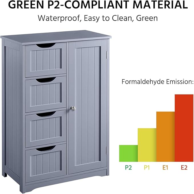 Yaheetech Bathroom Floor Cabinet, Freestanding Storage Organizer Unit Kitchen Cupboard W/ 4 Drawers & Adjustable Shelves, Using for Kitchen/Bathroom, Gray