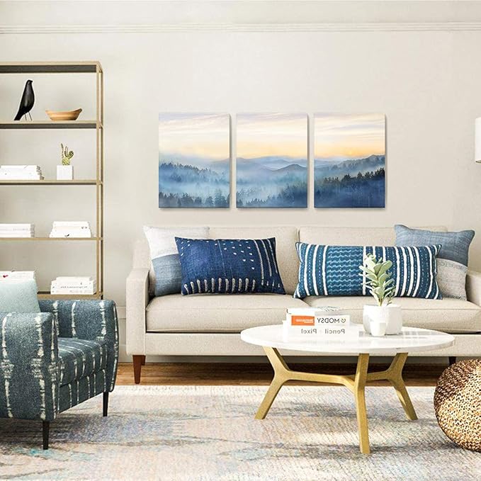 - SIZE: 12x16 inch x 3 piece , sunrise foggy picture canvas wall art. and canvas is wrapped around the frame. Can be hung directly with the mounting hardware.