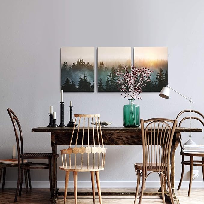 - SIZE: 12x16 inch x 3 piece , forest picture canvas wall art. and canvas is wrapped around the frame. Can be hung directly with the mounting hardware.