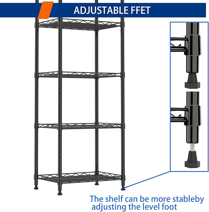 - The shelf is specially coated for protecting it from any water, rust or corrosion. Not worry to place the shelving unit in your kitchen or bathroom, easy to wipe down clean