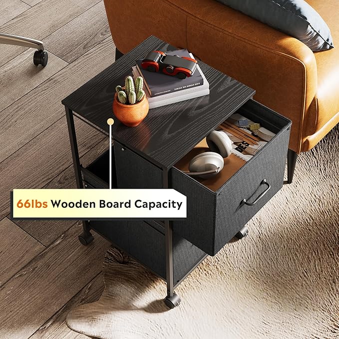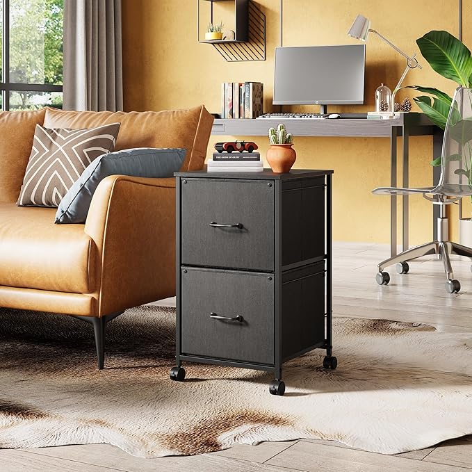 - Easy to Move: Rolling on 4 wheels, this mobile file cabinet can fix or move around your home office freely. Built-in brakes on front 2 casters to keep it in position and add stability. Unique fabric drawer design makes it only weigh 22 lbs. and light to move.