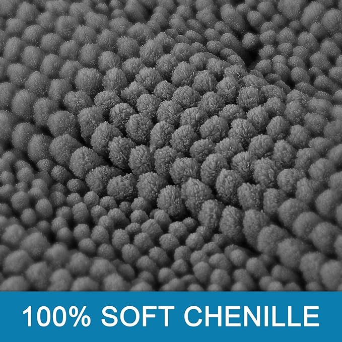 - ULTRA THICK: 2 Piece Set. These bath rugs are passed GLOBAL RECYCLED STANDARD certificate. Compare the normal quality 1350g/sm, this plush chenille carpet set is more thick and bushy, quality up to 2000g/sm weight, thus make the bath mats amazing soft and cozy like a comfortable quilt protector for your feet