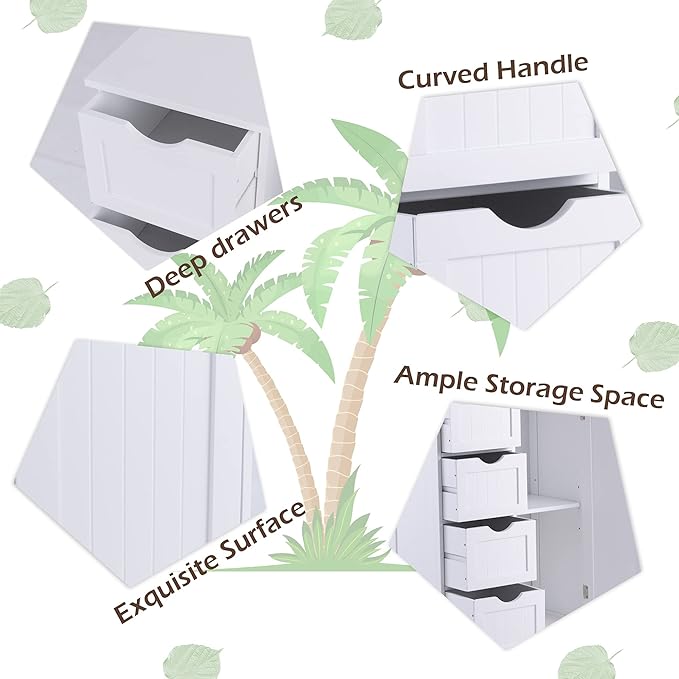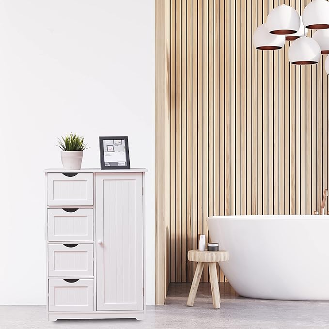 GLACER Bathroom Floor Cabinet, Multifunctional Storage Cabinet with 4 Drawers and 1 Door, Wooden Side Storage Organizer for Bathroom, Living Room or Kitchen, 22 x 12 x 32 inches (White)