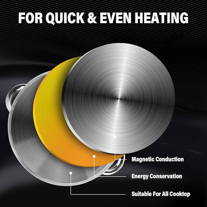 - ✅ 【Suitable for any stove】This pot have a tri-ply bottom for even heating,Compatible with all stovetop, including induction, gas, ceramic, electric, halogen etc. Dishwasher safe, oven safe
