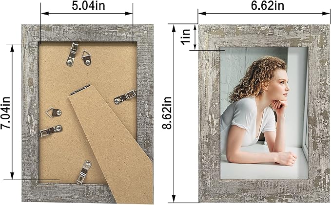 - 【Material】 Rustic 5x7 picture frame set made of MDF is very durable and the Real glass with high clarity, protecting your photos from dust, moisture and scratches.