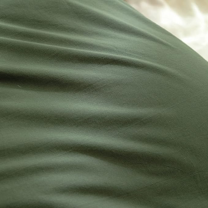 BESTOUCH Duvet Cover Set 100% Washed Cotton Linen Feel Super Soft Comfortable Chic Lightweight 3 PCs Home Bedding Set Olive Green Queen