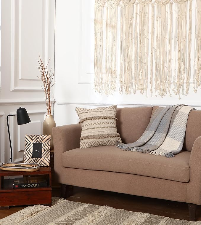 - Handloom Tufted Accents: Our pillow covers feature handloom dhurrie tufted accents in the front adding texture and dimension to their boho design, the back is made of plain cotton canvas fabric. The woven intricate details create a truly unique and artistic piece for your home.