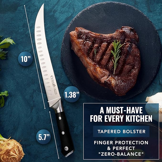 Cutluxe Butcher Knife – 10″ Cimeter Breaking Knife, Razor Sharp Forged High Carbon German Steel, Full Tang Meat Carving Knife, Ergonomic Handle Design – Artisan Series