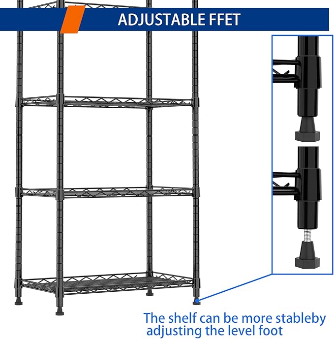 - The shelf is specially coated for protecting it from any water, rust or corrosion. Not worry to place the shelving unit in your kitchen or bathroom, easy to wipe down clean