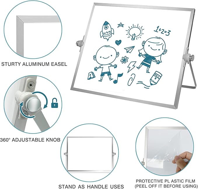 - 【Easy to Clean】:This desktop whiteboard has a smooth surface, easy to write and wipe without leaving marks. Please tear off the double-sided protective film before use. The portable erase board is perfect for home, kitchen, classroom and office