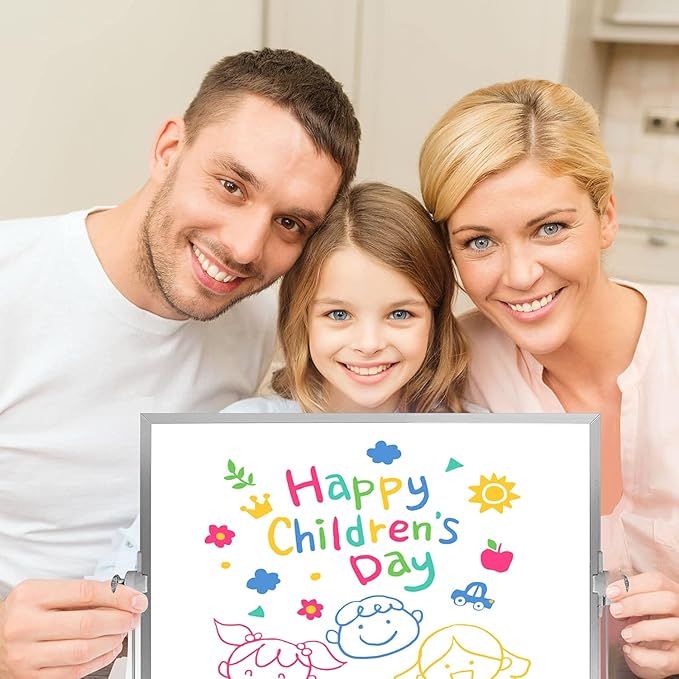 - 【Easy to Use】:This magnetic whiteboard is lightweight and easy for children to carry and move. It can be hung on the wall or placed on the desktop. It is also easy to operate with one hand, which is very suitable for learning and drawing