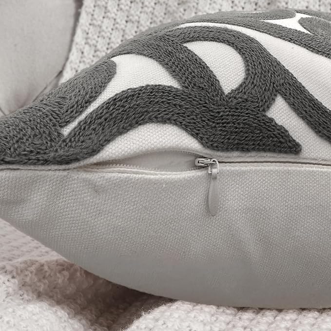 Alysheer Embroidered Decorative Throw Pillow Cover 18x18 inch, Cozy Warm Boho Mandala Chic Embroidery Pattern Gray Cotton Cushion Case for Sofa Couch Bed Living Room Decor (Grey)