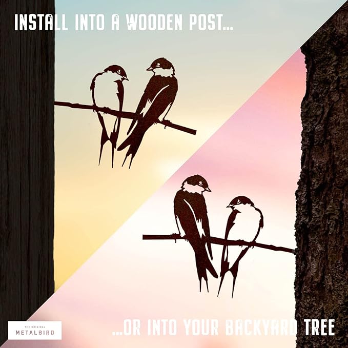 - EASY TO INSTALL COOL YARD ART: All you need is a hammer to tap in these two metal love birds. Be the artist. Transform a blank canvas - a tree, a post, a wall - with Metalbird outdoor ornaments. Pre-drill if hard wood.