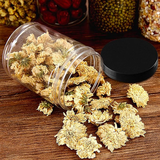 - Easy To Use - the plastic jars with lids transparent jars are straight-sided and round with wide mouth and thick walls; They are long-lasting and resistant to impact.And the containers are lightweight,easy to carry.