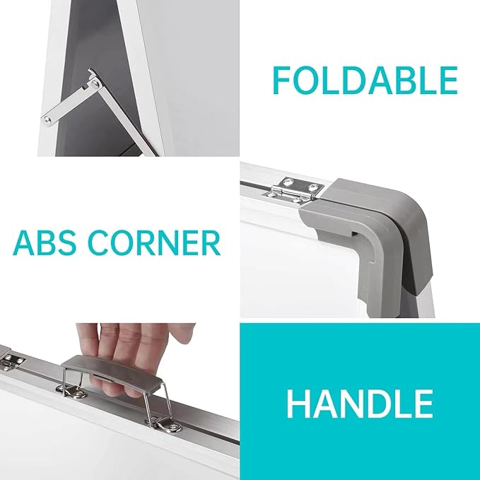 - PORTABLE & SELF-STANDING - The portable design with handle is convenient for you to carry around. This portable dry-erase easel with a self-standing design is perfect for small-group learning activities and leaving messages. It's a great learning tool for your office, school classroom, home, or any commercial space, even traveling or camping.