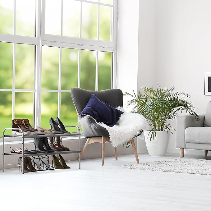 Simple Houseware 2-Tier Shoe Rack Storage Organizer, Grey