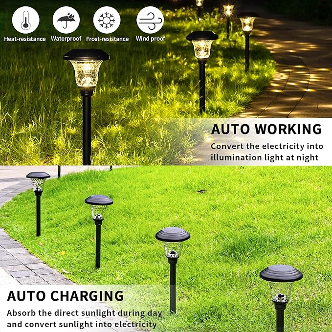 - 【EXCELLENT LIGHTING EFFECT】 Providing high lumens of 3500k warm white light, clear glass lampshades ensure no decrease in brightness, glass design projects sunflower-style light pattern, add a unique decorative charm to pathways, walkways, sidewalks, patio, yard, garden and landscape