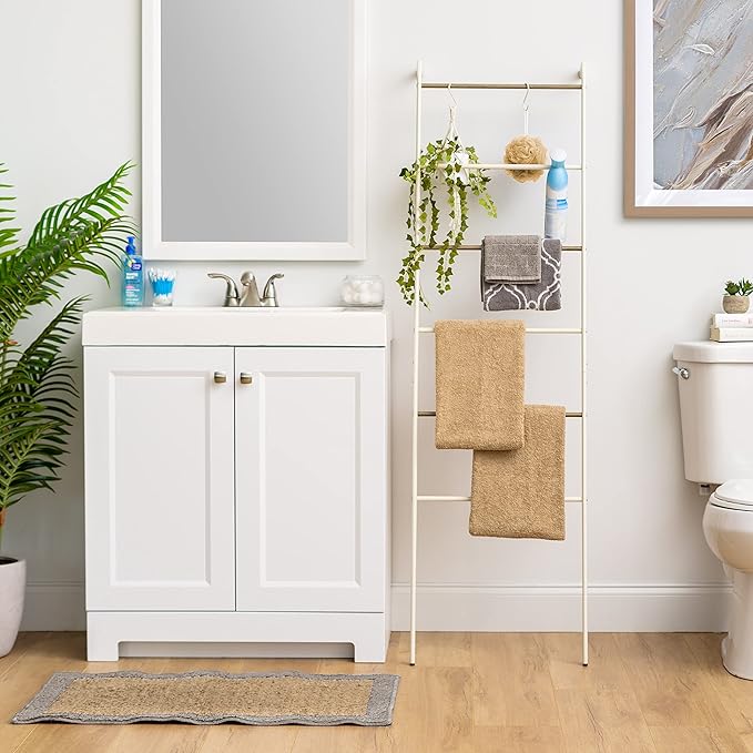 - VERSATILE: Display towels, blankets, throws, and accessories in your bathroom, bedroom, or living room. Hang cleaning products or use the included S-hooks to showcase plants—perfect as both a stylish ladder and functional organizer.