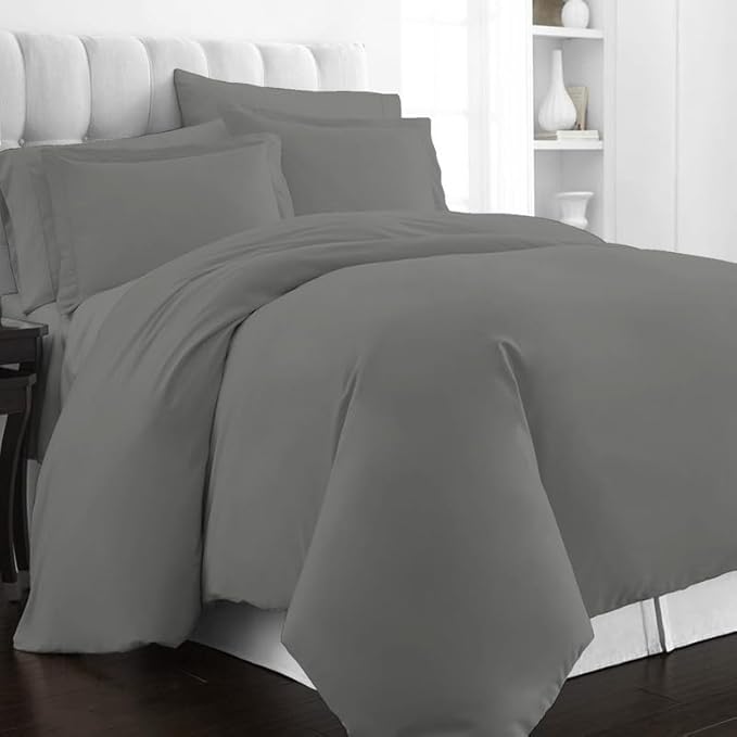Pizuna Pure 100% Cotton Queen Duvet Cover Set, Luxurious 400 Thread Count Long Staple Cotton Sateen Weave with Button Closure (Combed Pearl Grey Cotton Duvet Cover Queen)